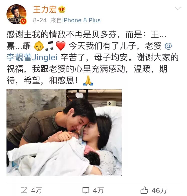 还有王力宏,因为他们家生了三个娃,在第三胎生下儿子以后,力宏也是走了一把温馨中带着淘气的路线——