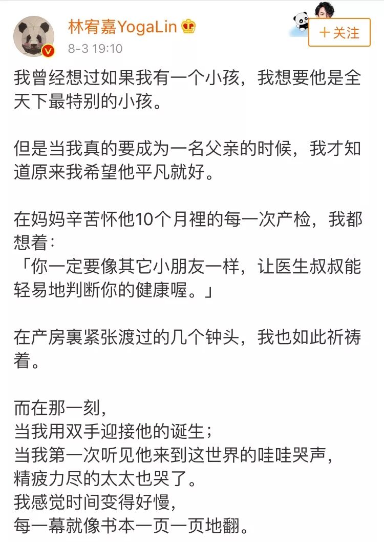 还有才气满满的歌手林宥嘉,8月初喜得贵子的他,晒出的长文堪比小散文了——
